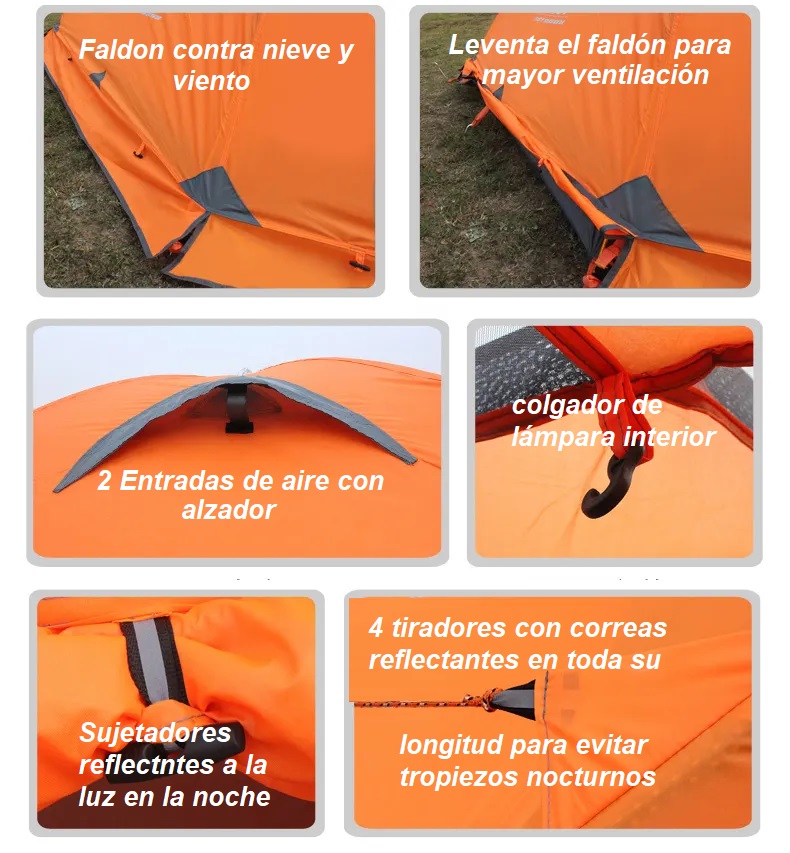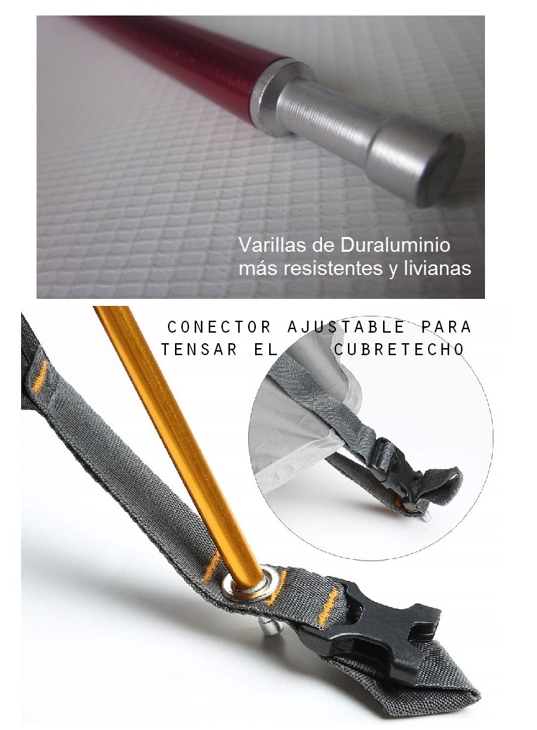 - Material : Outer 210TPU 5000 mm Poliester. Techo impermeable.